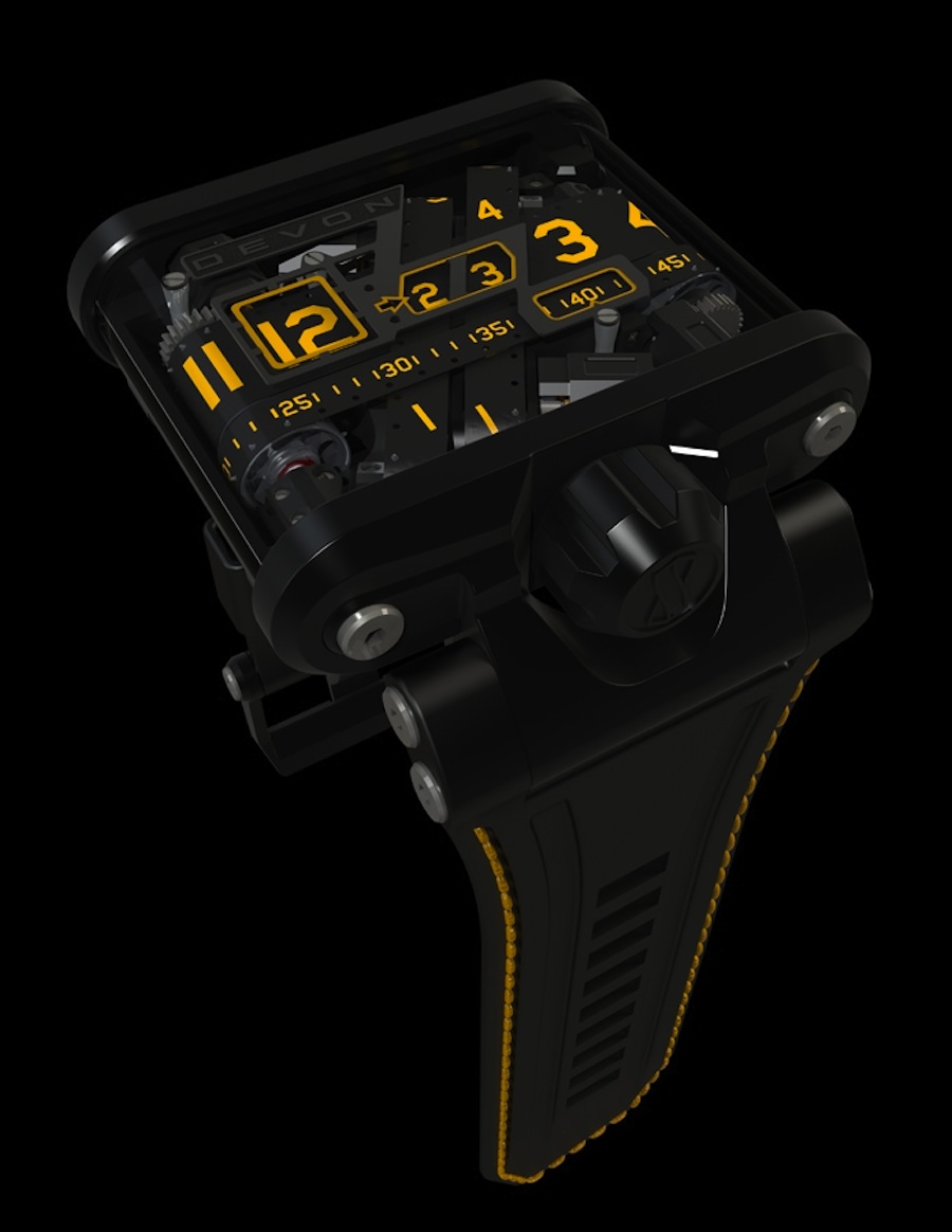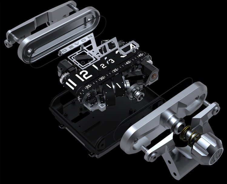 Traditionally the watch market is dominated by Swiss brands with exquisite styling & mechanical movements using 200-year technology. In a world where Tourbillon & minute repeaters are more popular than ever before, is there room for new technology? Enter Devon -a Californian based company making the huge claim they’ve re-invented the watch. The Tread 1 is the company’s first foray into the very competitive luxury watch market. Jason Wilbur, who was inspired by a custom motorcycle with numbers on the exposed belts of the bikes drive system, devised the original concept. From there on it was a collaborative design process between Scott Devon, Ehren Bragg (Managing Director) & Chief of Engineering, Jeff Stephenson.