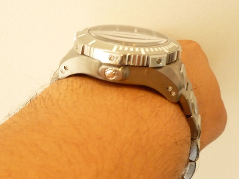 The design of the DeepQuest is very understated & I feel in essence that this is the key to its success. The sleek black dial works in perfect balance with the contrasting steel hands. I personally love the delicate detailing of the company logo on the second hand. The attention to detail on this sophisticated timepiece is exemplary. Fundamentally every element of the design is well executed including the brushed Titanium bezel & bracelet. All these components are superlative but the coolest feature has to be the patented rectangular micro gas tubes on dial. Incredibly this improves the watch’s night visibility by up to 100 times compared to conventional luminescent paint.