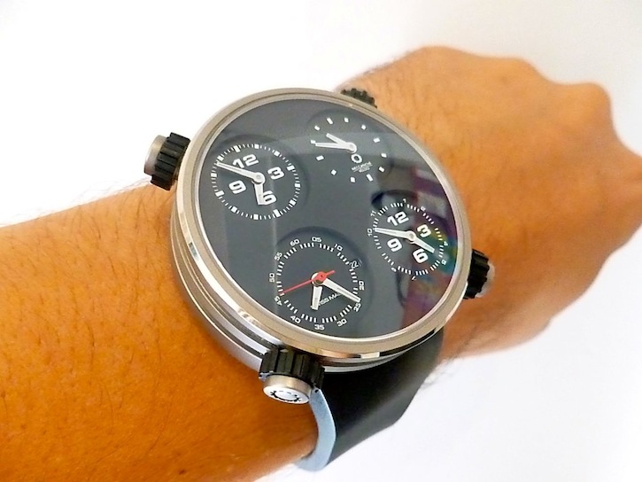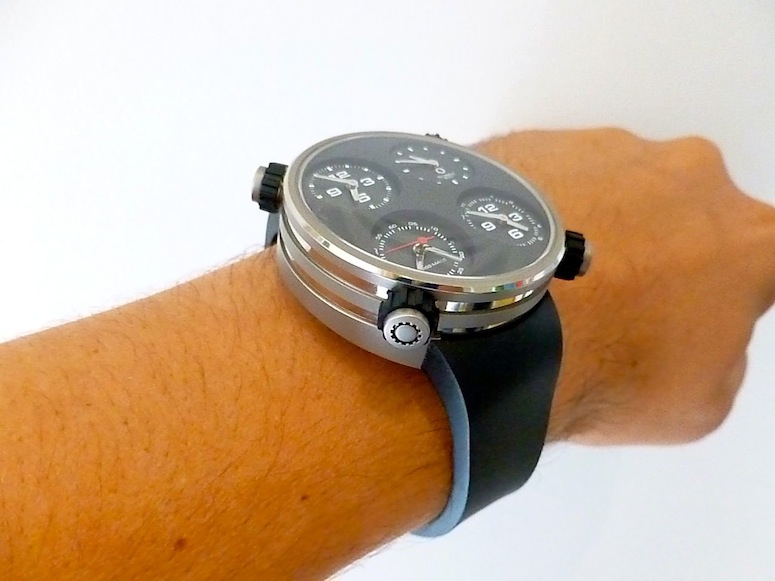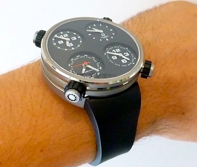 It’s easy to be seduced by the watches’ rugged good looks. Fundamentally the coolest features of this timepiece are the engines that control it. Unbelievably four independent Swiss made ETA 2671 self-winding movements drive the watch. These mechanical marvels comprise: 25 Jewels, oscillating at a frequency of 28,800 VPH. In my opinion this superb timepiece delivers what it promises. Prices range from: $4,825-$11,990.