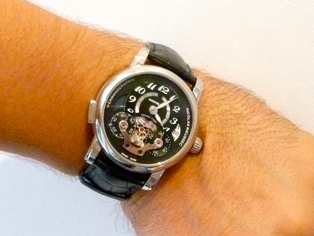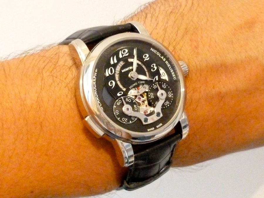 On March 9th 1822 Nicolas Rieussec devised the worlds first chronograph. His patented device consisted of wooden case with a clock movement that drove two rotating dials on the cover. Montblanc have acknowledged this extraordinary mans vision by incorporating it into the design of this watch. I’m sure if he were alive today he would be enchanted with the results of this glorious timepiece.
