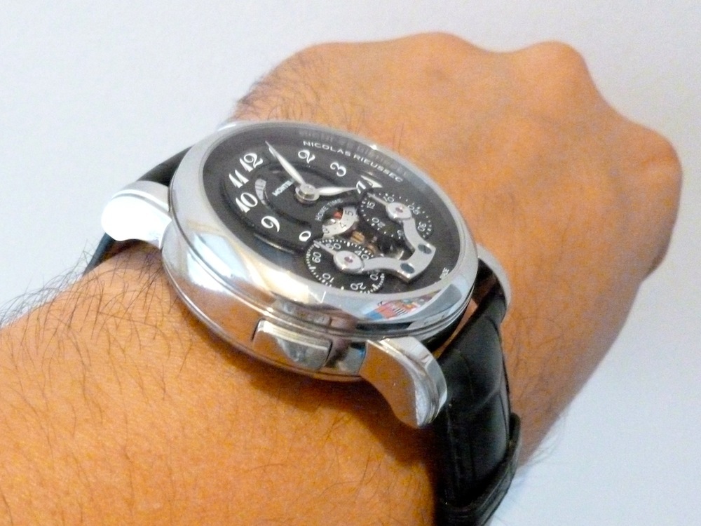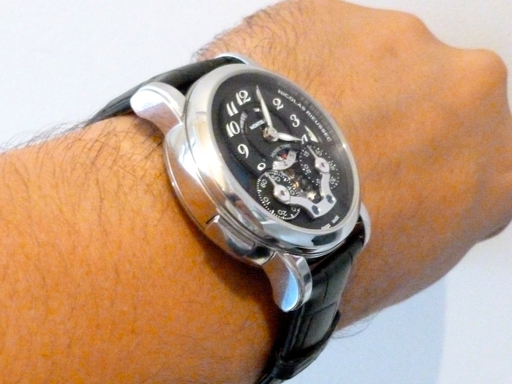 My first impression is how delightfully charming the actual watch is. The Nicolas Rieussec felt very comfortable to wear & delicately balanced on my wrists without any protrusion from the lugs. This is probably down to its subtle design & modest proportions. At 43mm x 15mm this isn’t a particularly large piece by modern standards. In essence it fits within the classical mid size category honouring the spirit of its namesake. I feel the watch will appeal to a broad spectrum of buyers due to its charismatic appearance. Ultimately this alluring timepiece could be worn for most occasions especially formal events.