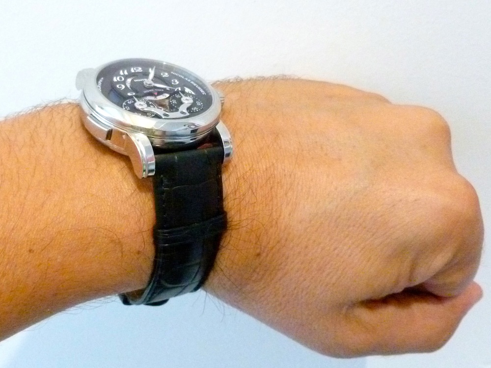 A Black alligator-skin strap with double-folding clasp made of steel accompanies all this refinement. The suggested retail price is: $14,540.