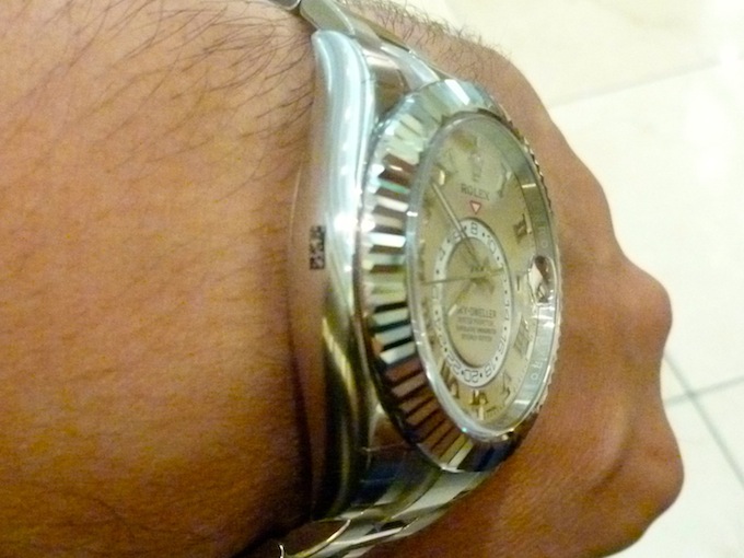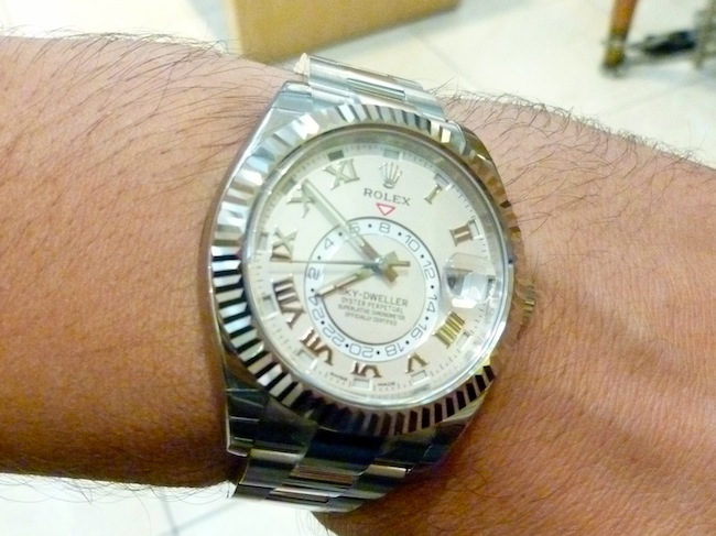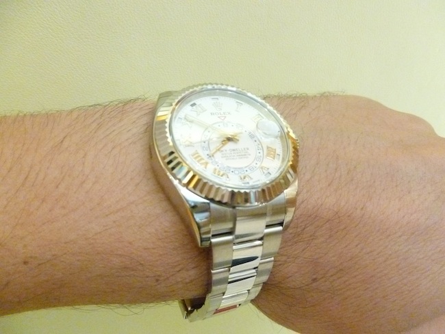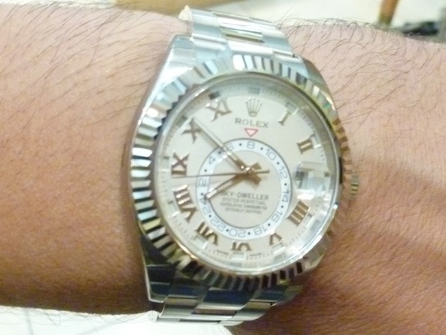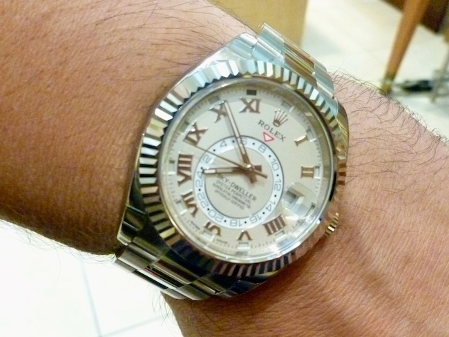 On first impressions I was struck by how glorious the Oyster Perpetual Sky-Dweller appeared. The timepiece has a diameter of 42mm that is relatively small by present standards. It sat very easily on my wrist and there was no protrusion from the lugs. Like most of the company’s watches the design has been well conceived to ensure optimum comfort levels. Realistically this is a timepiece that will appeal to a broad demographic and could be worn for most occasions. I can really envisage a piece of this magnitude being adorned for a formal party under a dinner suit. Essentially Rolex watches are highly aspirational and the ultimate status symbol. Legendary tennis player Roger Federer personally sports this timepiece as part of his multi-million dollar sponsorship deal.