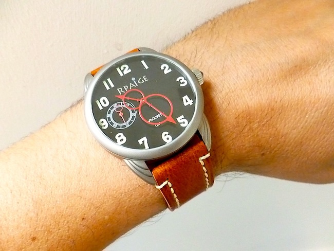 Visually the Wrocket is absolutely beautiful and unlike any other watch I have ever seen. On this particular model the black dial perfectly contrasts with the large bold numerals. The red hands are sensational and completely seducing to the eye. Richard told me he personally painted them and based them on a Jean Dunand Art Deco screen made in 1925. Other successful elements of the design include the small second counter, contoured lugs and delicate crown with inset Swarovski crystal. Even the RPaige logo plays an integral role in the overall success of the design.