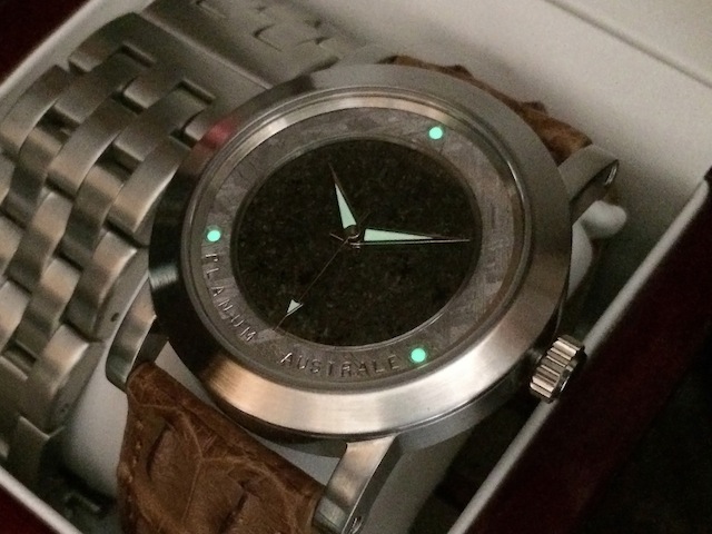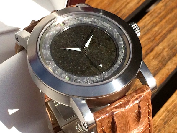 From recent conversations with Frank Heydrich it is apparent that he maximizes every hour of the day. As I mentioned in my previous article his main occupation is that of a jet and boat engineer. Essentially making watches is just a creative outlet enjoyed in his spare time. Nevertheless this level of proficiency involves an enormous amount of skill and dexterity. A few weeks ago I wrote an article for Luxurious Magazine featuring his Bella Luna. This is the world’s first watch with a dial constructed from a piece of the moon. Following similar lines the dial of the Planum Australe is fabricated from a part of meteorite from Mars.