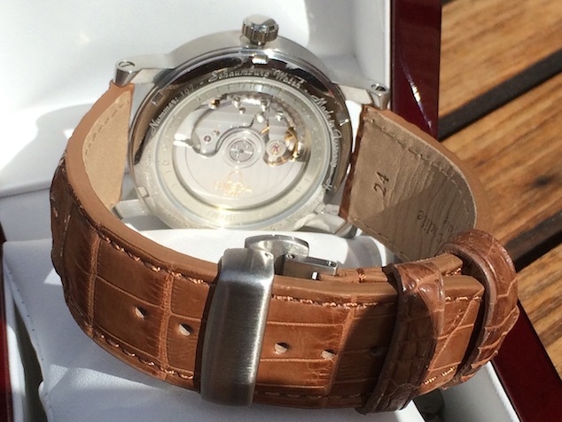 The Planum Australe has a stylish brown hornback crocodile bracelet with matching stainless steel deployment clasp. For prices contact Frank Heydrich directly at: http://frankheydrich.com