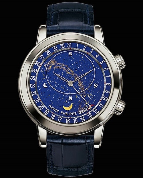 The Platinum Celestial 6102P has a hand stitched blue alligator strap with platinum folding clasp. Priced for the connoisseur at: $345,550. (Available to purchase at: http://www.jfarrenprice.com.au).