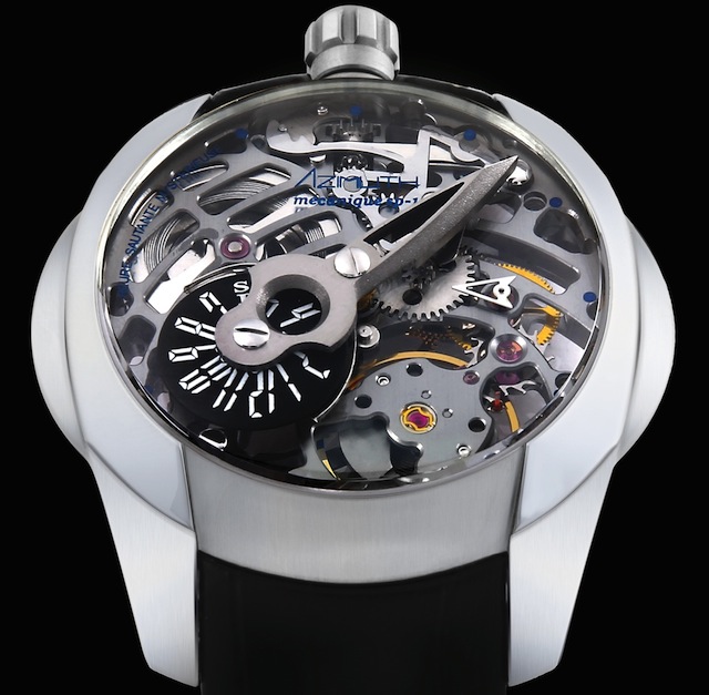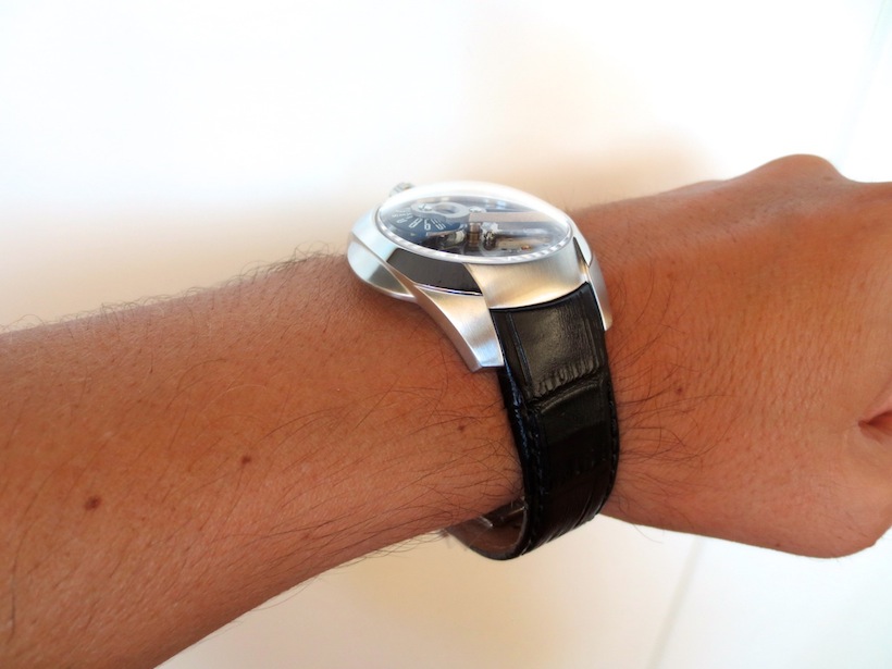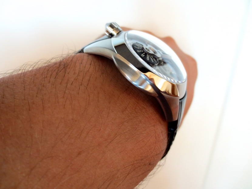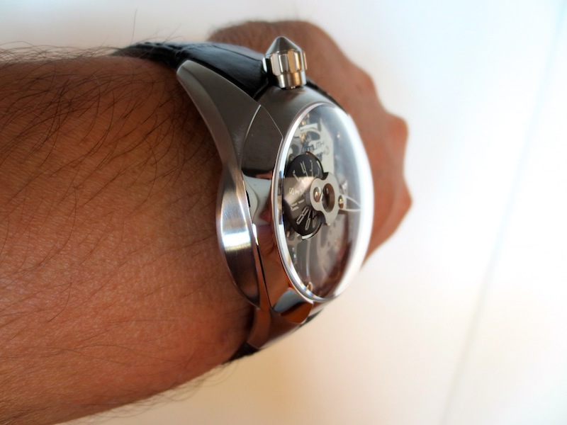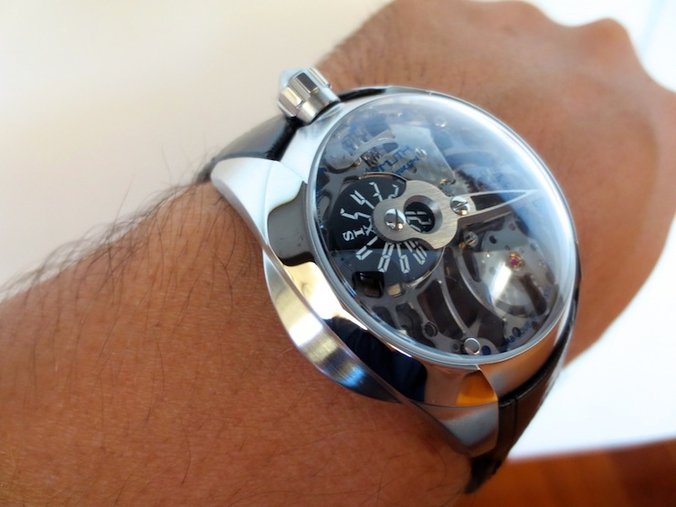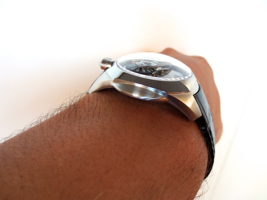 Currently there are five other attractive models available in the SP-1 Spaceship collection. The Predator is the first watch in the series to have an open worked dial, which gives it a multi-layered appearance. It also showcases the intricate mechanical movement to its full potential. I love the three-dimensional titanium minute hand and rotating jumping hour disc. Other features include a large sculpted crown (positioned at the top of the watch) and dome sapphire crystal glass. Overall the composition is highly effective and the finishing superlative.