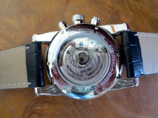 As you would expect with a watch of this quality Monblanc have equipped it with an equally impressive self-winding movement. The Calibre 4810/503 (ETA 7754) comprises 25-jewels and oscillates at a frequency of 28,800 vibrations per hour. This refined mechanism is perfectly showcased through the sapphire crystal exhibition case back. Functionally the Timewalker Chronovoyager UTC features hours, minutes, small seconds, date, chronograph and GMT facility. The watch also has a power reserve of 46 hours and is water resistant to a depth of 30 metres.