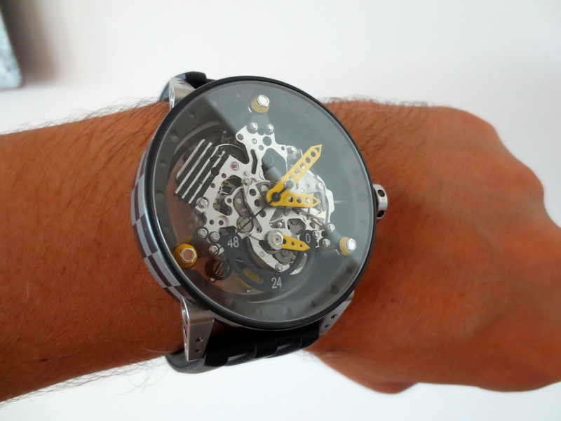 A few weeks ago Melbourne based online retailer/distributor Watchpartners (http://www.watchpartners.com.au) were kind enough to send me B.R.M’s phenomenal R50 TN for review. Although I love all of their timepieces this particular model is one of my personal favourites. Ultimately this is because of its supersized dimensions, which measure 50mm x 17mm. Clearly the proportions of this watch won’t appeal to the faint hearted but I feel it suits the design. I also think this is one of the most comfortable and lightweight timepieces I have ever worn. Primarily this is down to the refined case design and choice of high performance titanium in production. For that reason this watch would be a practical option for daily usage.