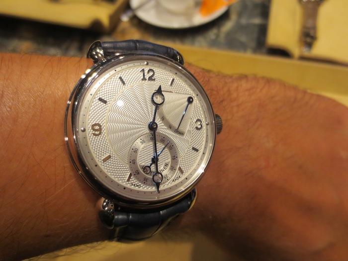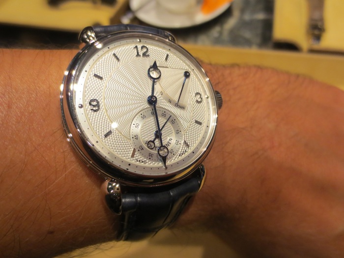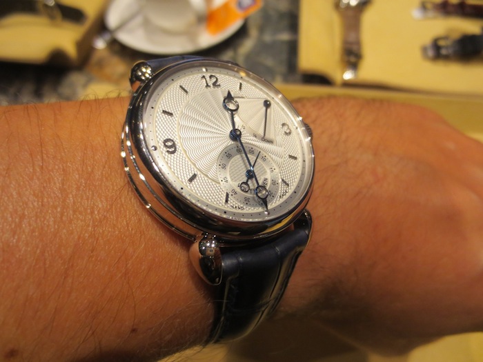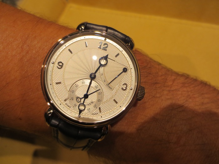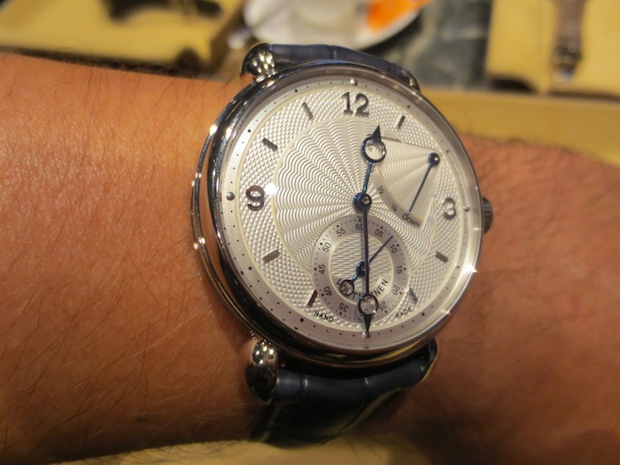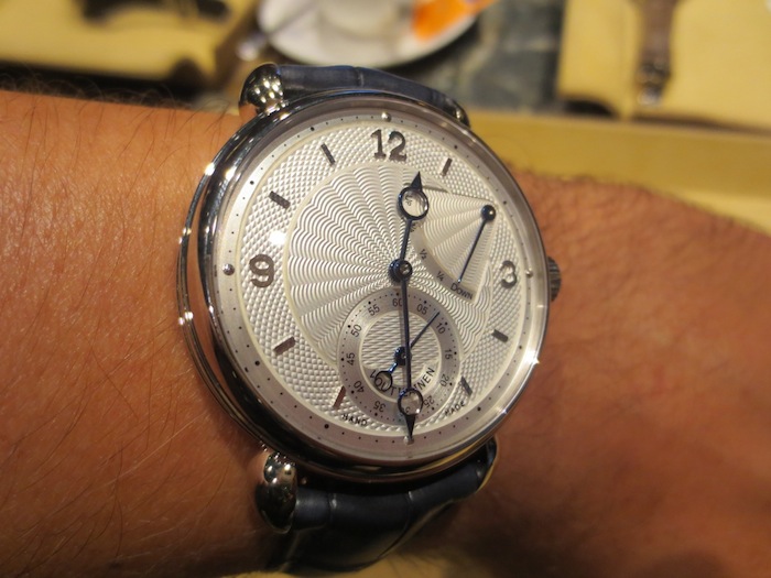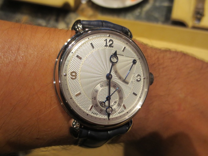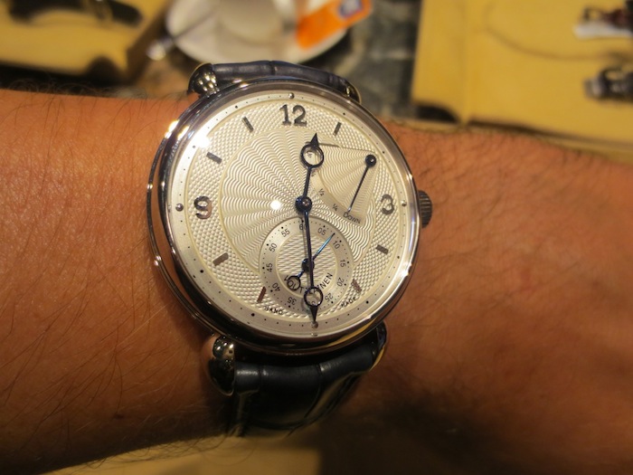 A few weeks ago I visited The Paragon boutique (http://www.thehourglass.com) in Singapore and they kindly allowed me the opportunity to try on the marvelous Voutilainen V-8R. My first impression was how small it appeared especially because I am used to wearing and reviewing much larger watches. However I can appreciate that the 39mm diameter will appeal to traditional male buyers and potentially the unisex market. Generally I found the timepiece felt lightweight and sat comfortably on my wrist. Primarily this is down to the classical case design and choice of luxurious 18-karat white gold in production.