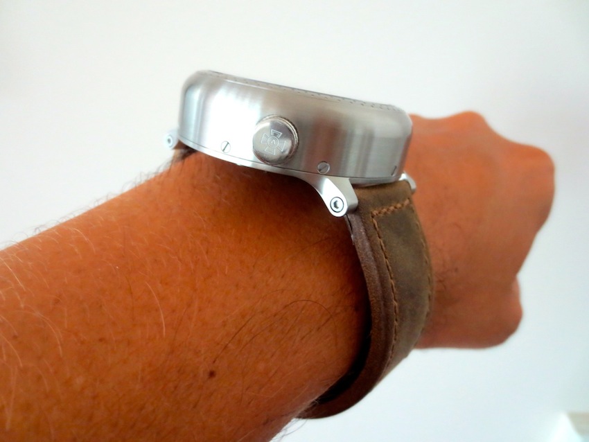 A few weeks ago (just before the Christmas holidays) Mark Daniel very kindly sent me a Sopwith Aviator to test. I have to say that even the glossy images on the company’s website don’t do the watch justice. Dimensionally the 54mm (excluding crown) diameter case of the timepiece won’t appeal to the fainthearted. Nevertheless I feel these proportions are integral to the success of the watches design. Generally I found the watch sat comfortably on my wrist and was actually surprised at how light it felt. I also feel that in this instance 316L stainless steel (rather than titanium) is the correct choice of material.