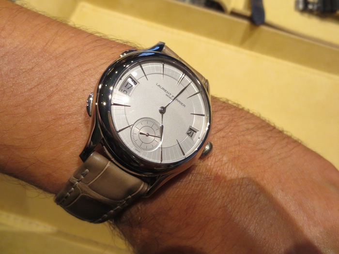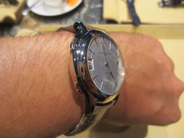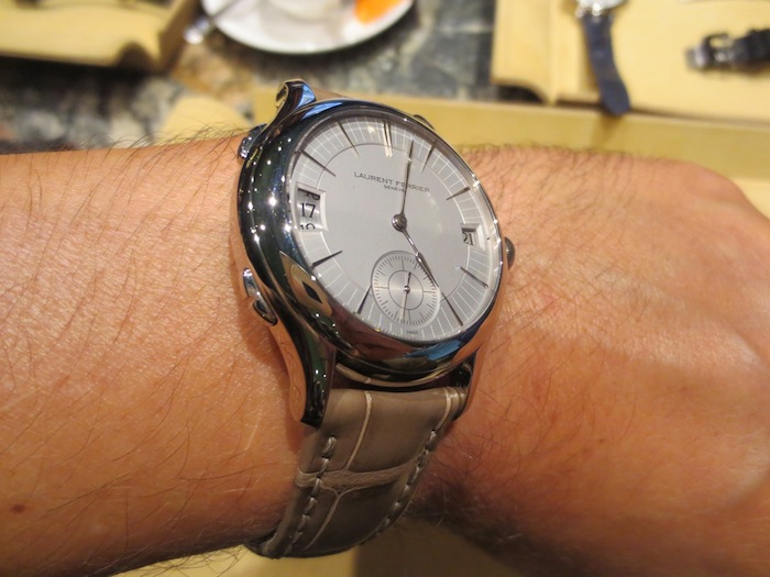 Even though Laurent Ferrier has 37 years experience within the watch industry he only established his own label in 2010. That is why the amount of respect he has gained over the last four years is very impressive The Galet Traveller isn’t a particularly large watch by modern standards and only measures 41mm x 10mm. These classical proportions should appeal a wide variety of discerning male buyers and potentially the unisex market. Generally I found the watch comfortable and lightweight to wear. Essentially this is down to the elegant case design and choice of luxurious 18-karat white gold in production.
