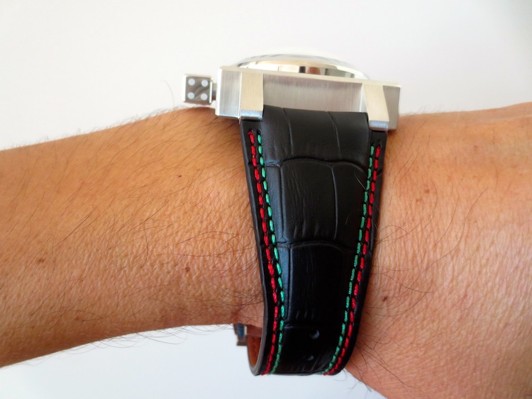 Prior to the watch arriving I had only seen visuals on Azimuth’s website and via Facebook. Certainly these images do not do the watch justice and it clearly looks better in the metal. Effectively this is a redesigned version of the SP-1 Roulette and the case shape has evolved. Whereas the Roulette measures 55mm x 35mm, the King Casino has a more uniform 45mm x 45mm square case. Generally the watch sat comfortably on my wrist and I would be happy to wear the watch on a daily basis. Primarily this is down to the sophisticated design and choice of 316L stainless steel in production.