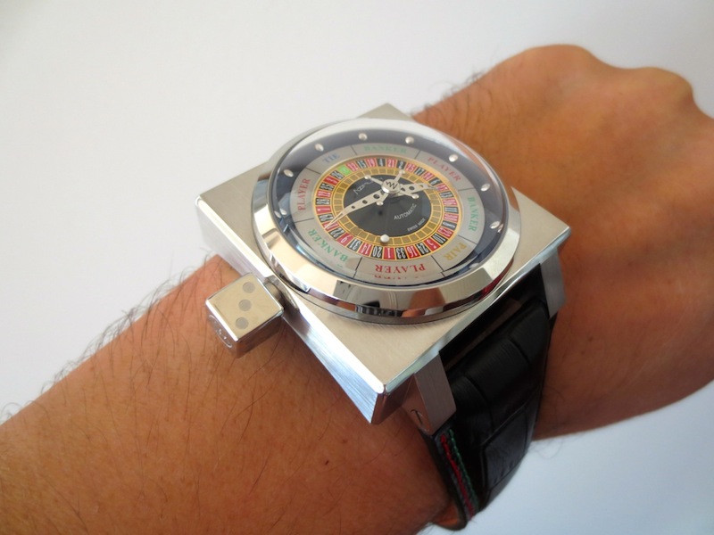 Powering the watch is a modified Swiss made ETA self-winding movement. This caliber comprises 23-jewels and oscillates at a frequency of 21,600 vibrations per hour. Functionally the King Casino features hours, minutes, seconds and a roulette/Baccarat spinning ball indication. The timepiece also has a power reserve of 40-hours and is water resistant to a depth of 30 metres.