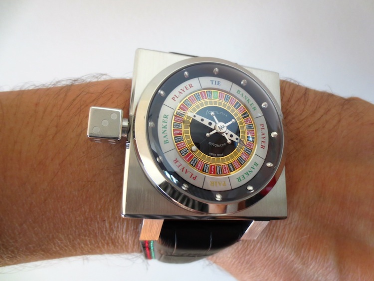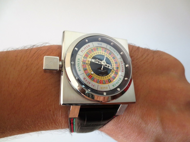 Visually the King Casino has a cool appearance and is easily identifiable as one of Azimuth’s creations. Even though the watch is essentially just a new interpretation of the SP-1 Roulette it has a totally different dynamic. I prefer the square format as it promotes the design in a more effective way. The new wider façade has also allowed Azimuth to feature a few more details. Inclusions like an additional Baccarat card game inspired text ring (Player, Banker, Tie), dome sapphire crystal lens are effective and the bezel displays cleaner lines. Overall I feel the composition is both sophisticated and playful.