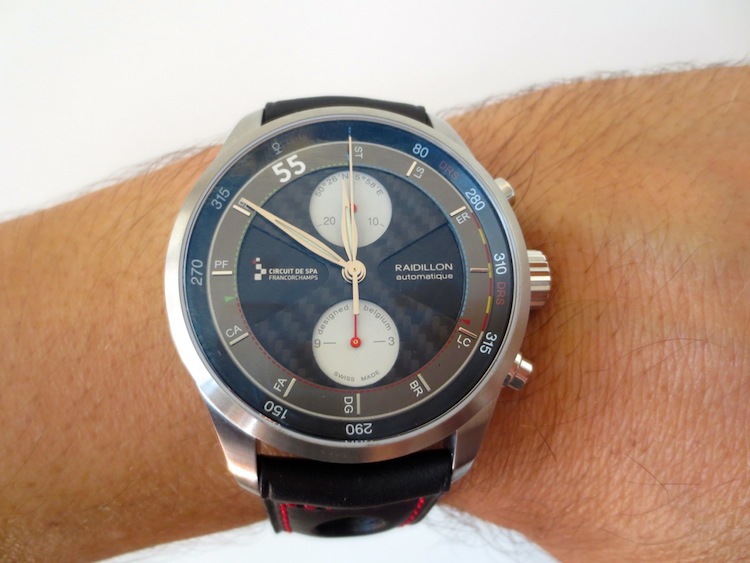 For many years I have admired the talent of Belgium based watchmaker Raidillon. Interesting the company name is derived from a famous corner of the Belgium Formula One track Circuit de Spa-Francorchamps. The business was founded in 2002 and now is under the helm of Fabien de. Schaetzen. Previously Fabien has owned a construction company and was involved in marketing for Danone. Over the last three years he has been instrumental in the evolution of the brand. Although they might not have the high profile of brands like Rolex, Omega, Tag Heuer they certainly are producing some pretty decent watches. A great example can be found in their distinctive looking Chronograph.