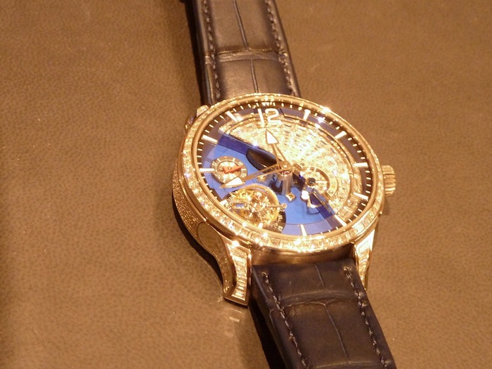 A few weeks ago I spoke to Julian about the imminent arrival of another even more exclusive masterpiece from Greubel Forsey. The timepiece was unveiled at SIHH (Salon International de la Haute Horlogerie) and is called Diamond Set Tourbillon 24 Secondes Contemporain. By coincidence I featured this wonderful watch in an article I wrote for Esquire Magazine (Middle East) and can honestly say the images don’t do the actual watch justice. Dimensionally the timepiece is a similar size to both the GMT and Double Tourbillon Technique measuring 43.5mm x 16mm. These classical proportions will undoubtedly appeal to serious collectors. Even though I only had a limited time to wear this phenomenal watch I found it sat very comfortably on the wrist. Realistically this timepiece would only be reserved for extra special occasions and not for daily usage.