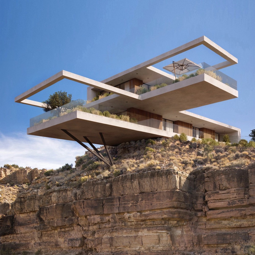 Presently architects are pushing the boundaries with more industrial fabrics and innovative designs. Previously they would have to await completion of the project before employing a professional photographer to take images. However, in the digital world, we live in architects can now create insane concepts using computer-generated images (CGI). Essentially, this means there are no boundaries at all. One of the most popular genres at the moment are clifftop houses. I’ve seen many insane visuals on popular social media sites like Facebook, Instagram and LinkedIn. At first glance, you could be deceived into thinking these were real-life homes. The attention to detail is exceptional and the quality is super realistic.