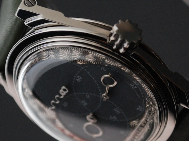 By looking at the appearance of the UFO-Tourbillon and UFO-Regulator it is clear that the aesthetics of the watch is very important to Donald. Each of the timepieces’ façades has been well executed and highly distinctive. The dials are composed of slate, which is rarely used in the watch industry. The only other brand (I am aware of) that has successfully utilised this fantastic material in its design is Tissot. Details like the unusual hands, domed Hesalite crystal and the engraved bronze plating (on the Regulator) are really striking. I also love the large aperture positioned at 10 o’clock displaying the majestic half-flying tourbillon. Overall the layouts are well conceived and phenomenally well finished.