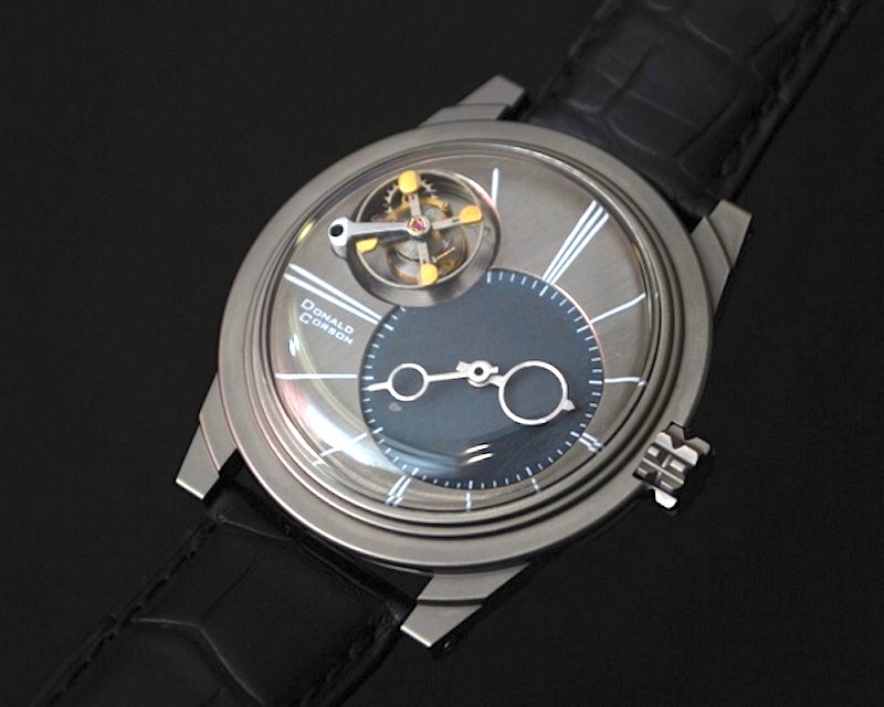 Donald W. Corson established his own company (of the same name) nearly ten years ago in the picturesque location of Yverdon-les-Bains, Switzerland. Since 2004 he has channeled his enormous passion for watchmaking and created two sensational models-the UFO-Tourbillon and UFO-Regulator. The UFO-Tourbillon is a highly complex timepiece that incorporates a half-flying tourbillon. It also looks absolutely stunning and completely unique. The UFO-Regulator is equally impressive and illustrates Donald’s attention to detail and dexterity.